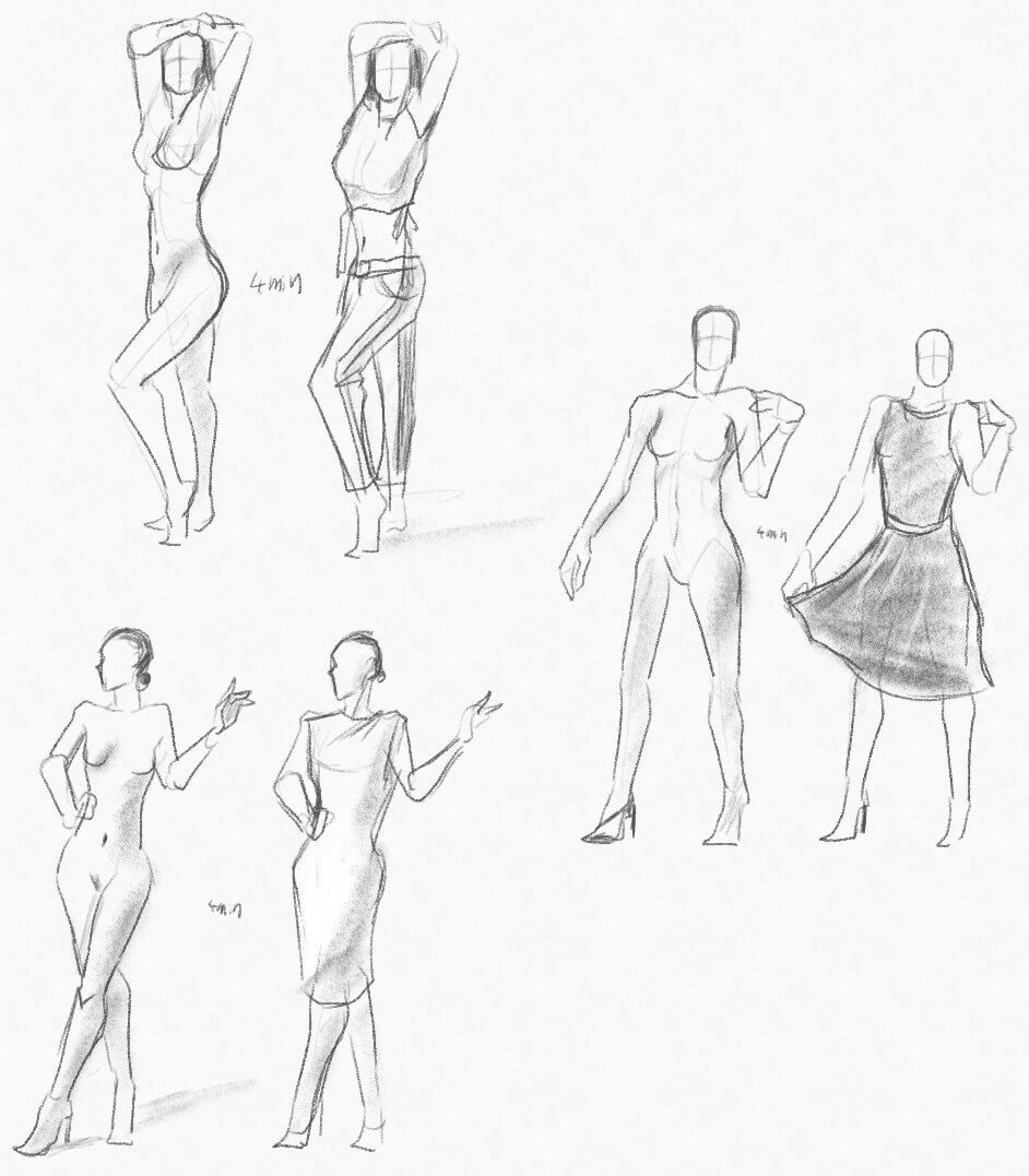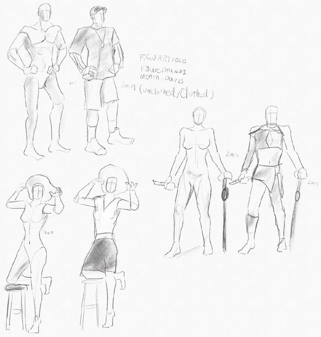 Day24:今日は1ポーズ4分クロッキー、2分経過で裸体→着衣に変わる一昨日とはまた違うパターン。今回は裸体・着衣を別に描いたけど裸体の上から服を描くのがいいのかな?