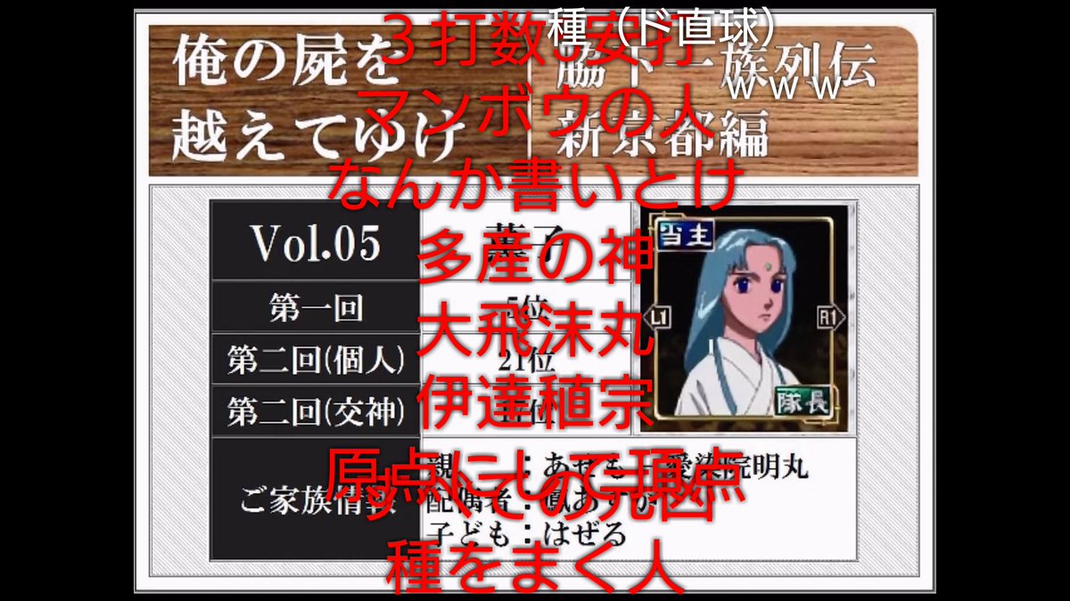 稲葉百万鉄氏のニコニコ動画におけるゲーム実況シリーズ、「PS版俺の屍を超えてゆけ」「脇下一族列伝」のファンイラスト中心のアカウントです。